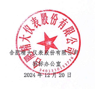 三、投標人應于2024 年12 月30 日前,將標書送達合肥精大儀表股份有限公司(北區),