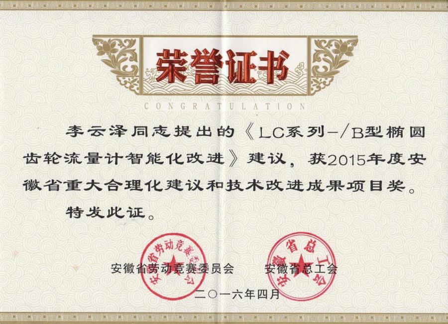 重大合理化建議項目和技術改進成果項目獎(LC-B型)