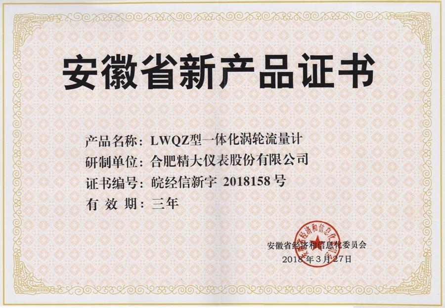 安徽省新產品證書(LWQZ型)